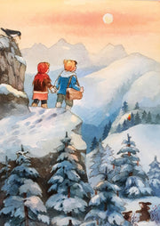 Die berühmte Erzählung "Bergkristall" (erstmals veröffentlicht 1845 als „Der heilige Abend") von Adalbert Stifter gehört zu den Klassikern der Weihnachtsgeschichten. Sie erzählt von den Geschwistern Konrad und Sanna, die ihren Großeltern im Nachbardorf Weihnachtsgaben bringen sollen, aber dabei in einen Schneesturm geraten. Sie müssen über den Pass, der ihr Heimatdorf Gschaid von Millsdorf trennt, in dem ihre Mutter aufwuchs. Sie, die Millsdorferin, und ihre Kinder aber wurden nie vollkommen von den Einwohnern ihrer neuen Heimat akzeptiert, erst die Rettung der Kinder aus dem Hochgebirge nach gemeinsamer Suche ändert dies.  Stifter lässt diese Geschichte nicht aus Zufall am heiligen Abend spielen – auch wenn es an jedem anderen Tag, ob früher oder heute stattfinden könnte.  Auch wenn diese Erzähltung schon 175 Jahre alt ist: Die Thematik ist immer aktuell. Vorurteile, Skepsis gegenüber Fremden und Gefühle, nicht dazuzugehören … Am Ende dieser besonderen Bilderbuchgeschichte siegt der Zusammenhalt in schweren Zeiten und die Nächstenliebe zwischen den Menschen, egal welcher Herkunft.