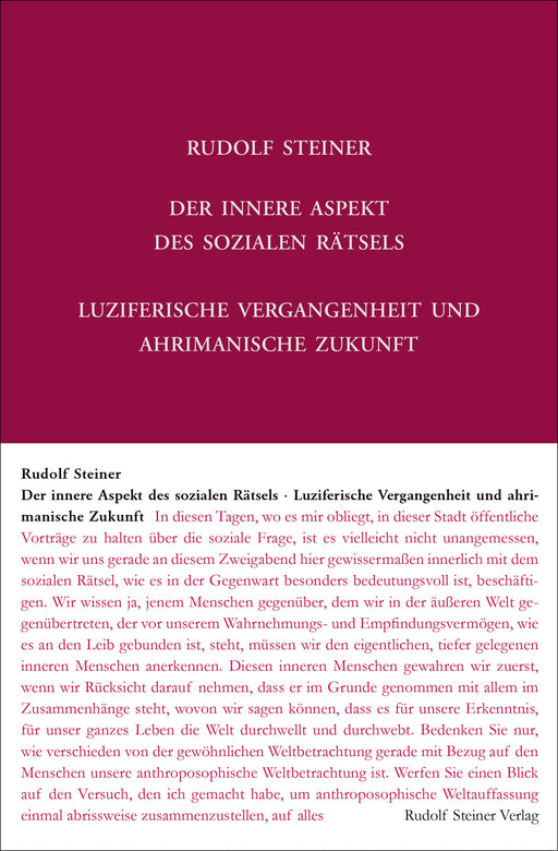 Inhalt (Auswahl): Der Mensch als Mittelpunkt des Universums / Die soziale Frage als Problem der Gesamtmenschheit / Irdisches Geistesleben und vorge...
