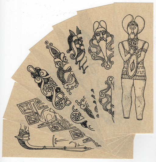 Lesezeichen mit keltischen Flechtmustern: auf Rohhaut-Imitat aus festem Papier gedruckt, mit Bunt- oder Filzstiften bemalbar, in Schutzhülle mit Sc...