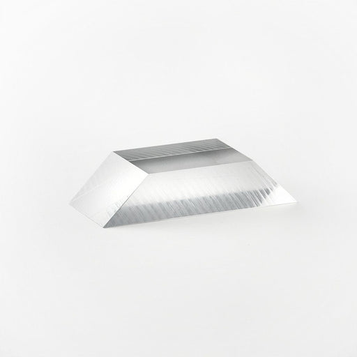 Acrylglas-Prisma mit 90° Hauptwinkel sowie 45° Ein- und Austrittswinkeln, 6 cm Länge und 3×3×3 cm Querschnitt; Seiten sind sägerau.