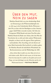 Matthias Brandt hielt 2025 eine denkwürdige Rede zur Erinnerung an die Widerstandskämpfer des 20. Juli 1944 in der Gedenkstätte Berlin-Plötzensee – dem Ort, an dem viele der Beteiligten an dem Attentat gegen Adolf Hitler hingerichtet wurden. Als Sohn des Emigranten und späteren Bundeskanzlers Willy Brandt und seiner Frau Rut nahm Matthias Brandt die Rede zum Anlass, aus heutiger Sicht über den Mut und die Motive der Verschwörer des 20. Juli und vieler anderer Widerstandskämpfer:innen, zu denen auch die eigenen Eltern gehört hatten, nachzudenken und auch sich selbst über notwendige Konsequenzen aus der Geschichte zu befragen. Den Ausschlag, sich mit diesem, auf seiner Rede basierenden Buch politisch zu äußern, gaben für Matthias Brandt die bedrohliche Wiederkehr des Rechtsextremismus und die Wahlerfolge der AfD.